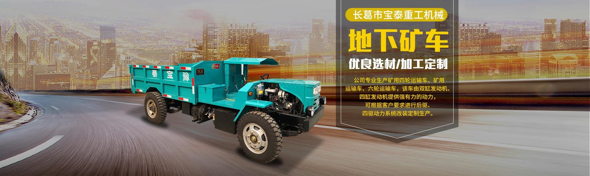 長(zhǎng)葛市寶泰重工機(jī)械有限公司坐落于全國(guó)百?gòu)?qiáng)縣(市)——長(zhǎng)葛市。南接魏都許昌,北依省會(huì)鄭州,距新鄭國(guó)際機(jī)場(chǎng)二十六公里,107國(guó)道與京珠高速?gòu)墓咀笥掖┻^(guò)。得天獨(dú)厚的交通環(huán)境為有識(shí)之士來(lái)公司指導(dǎo)合作提供了便利條件。 公司專注生產(chǎn)礦用四輪運(yùn)輸車、礦用運(yùn)輸車、六輪運(yùn)輸車,該車由雙缸發(fā)動(dòng)機(jī)、四缸發(fā)動(dòng)機(jī)提供強(qiáng)有力的動(dòng)力,該產(chǎn)品適應(yīng)巷道、隧道、平原、山區(qū)、工地各種道路,通過(guò)能力強(qiáng),運(yùn)載馬力大,質(zhì)量可靠,可根據(jù)客戶要求進(jìn)行后驅(qū)、四驅(qū)動(dòng)力系統(tǒng)改裝定制生產(chǎn),深受各類礦山實(shí)...